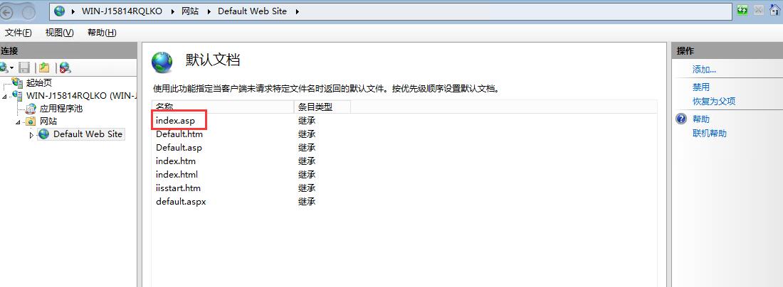 查看可用的網(wǎng)頁(yè)默認(rèn)文檔,例如:index.asp 也可以是default.aspx 或者等等
