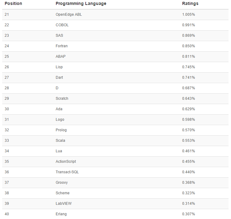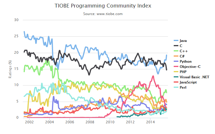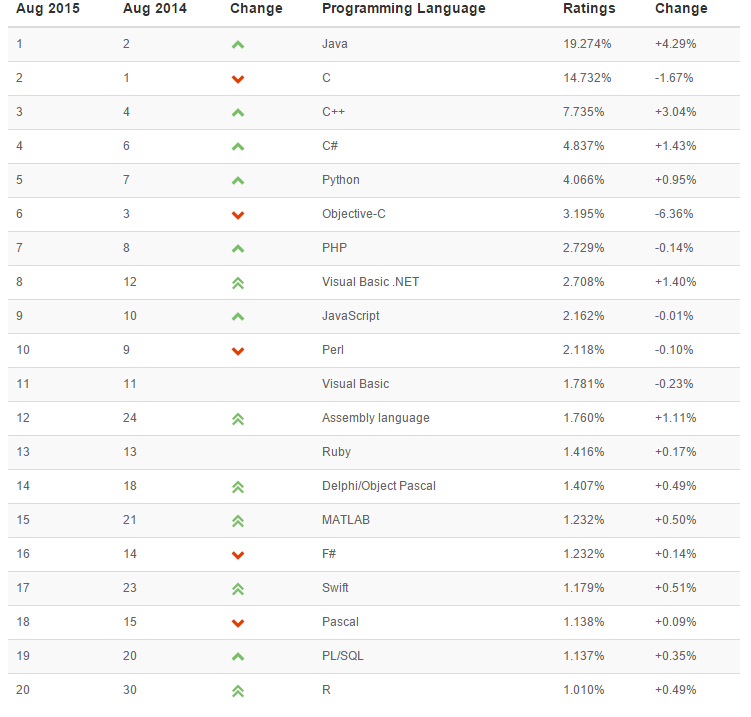 2015年8月網(wǎng)絡編程語言排行榜