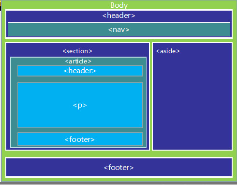部件元素 body、section、nav、article、aside、h1、 h2、 h3、h4、 h5、 h6、hgroup、header、footer、address
