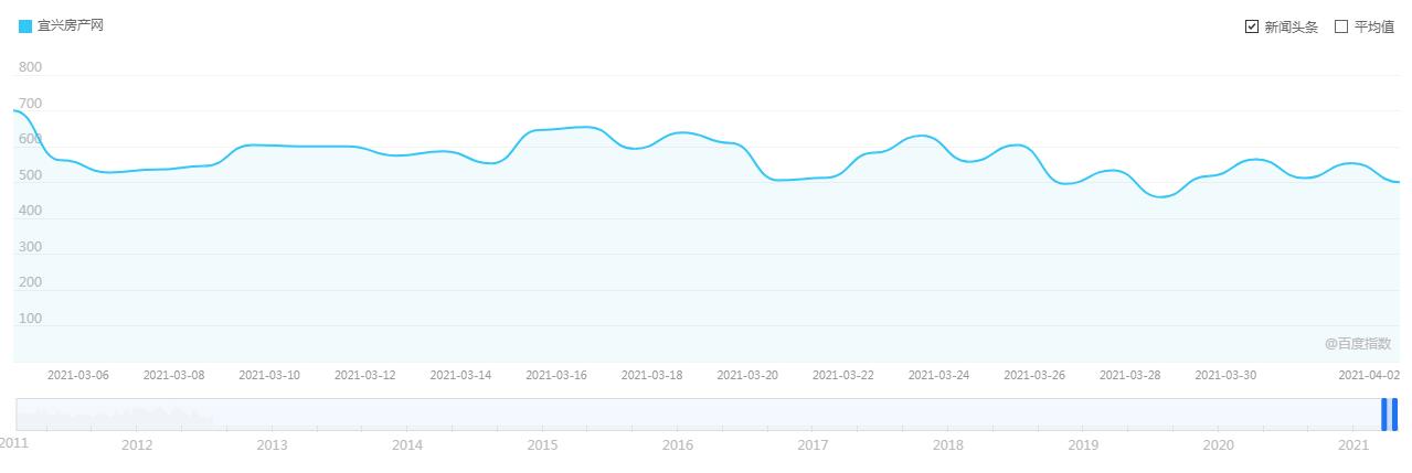 關(guān)健詞相當(dāng)于一個(gè)用戶比較喜歡搜索的詞,舉個(gè)例子,我在宜興要想買一套二手房,這時(shí)我們首先會(huì)想到在百度上搜索宜興房產(chǎn)網(wǎng)或者是宜興二手房,這里的宜興房產(chǎn)網(wǎng)或者是宜興二手房就是我們所說(shuō)的關(guān)鍵詞,或者我們可以理解成某一個(gè)行業(yè)的熱門詞。比如環(huán)保行業(yè)里的設(shè)備名稱:磁分離,等等這些用戶喜歡搜索的關(guān)鍵詞,而什么叫百度關(guān)鍵詞指數(shù),那就是我們需要進(jìn)入百度關(guān)健詞指數(shù)的頁(yè)面進(jìn)行查詢,百度官網(wǎng)關(guān)健詞指數(shù)網(wǎng)址鏈接:index.baidu.com,我們輸入要查詢的關(guān)鍵詞:宜興房產(chǎn)網(wǎng),這里我們會(huì)看到百度每天的關(guān)鍵詞浮動(dòng)指數(shù)值,如下圖: